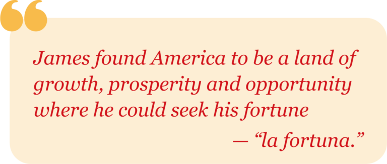 James worked in the Kimberly Diamond Mines in the early 1900s in South Africa until he received a letter from his uncle telling him of the fortune or la fortuna that awaited him in California, where his uncle had immigrated some years earlier. Coming from an extensive line of stone masons and master craftsmen, James was no stranger to challenging work; some could say it ran in his blood.